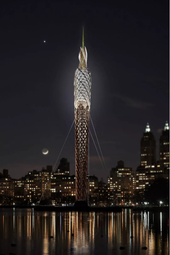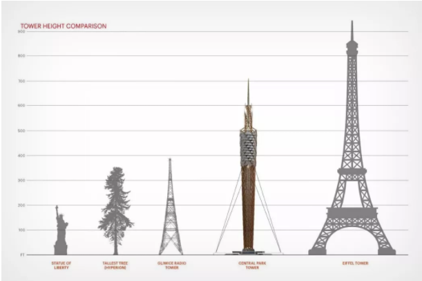 据外媒报道,纽约市的DFA工作室最近提出在纽约中央公园建造一座全世界最高的木塔。有趣的是,其污水过滤装置也将过滤杰杰奎琳·肯尼迪·奥纳西斯水库,并将其变成一个淡水池塘,供大家使用。这座细长造型的木塔被暂时命名为“中央公园塔”,高度将达到712英尺(217米)。