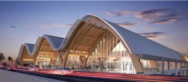 菲律宾的Mactan-Cebu国际机场是目前亚洲第1个大跨度全木结构的国际机场。该机场屋面设计为跨度23m的全胶合木屋顶,面积达65000m2,如图4所示。