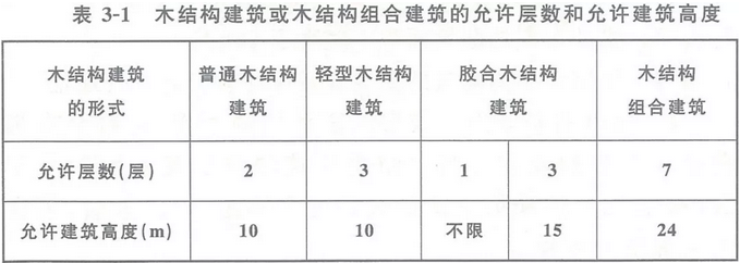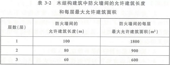 3、甲、乙、丙类厂房(库房)不应采用木结构建筑或木结构组合建筑。丁、戊类厂房(库房)和民用建筑,当采用木结构建筑或木结构组合建筑时,其允许层数和允许建筑高度应符合下表3-1的规定,木结构建筑中防火墙间的允许建筑长度和每层最大允许建筑面积应符合下表3-2的规定。