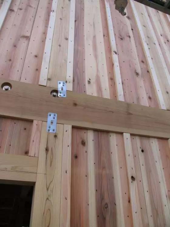 从图中可以看出,整体结构壁板是沿着立柱一侧面上的沟槽,插入木结构框架中的。