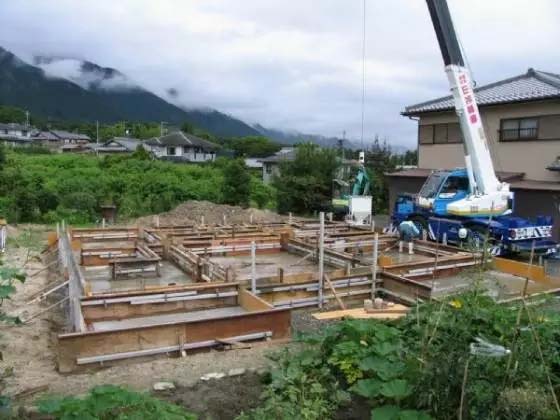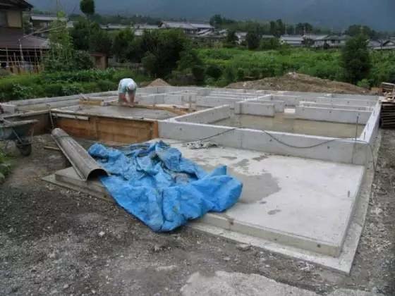 从图中可以看出,钢筋混凝土基础顶面已经固定一道木结构框架,这部分位置的木结构框架在日本叫“土台”;土台是上部承重木结构框架与下部钢筋混凝土基础进行连接固定的中间过渡部分。
