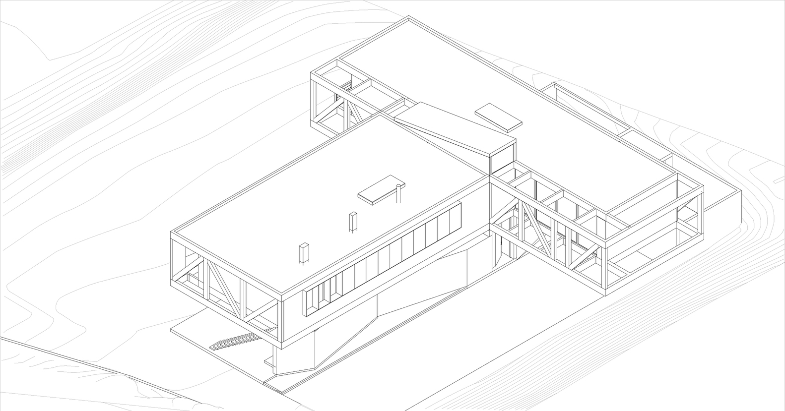 这样一来,两个平行的网梁状结构就完成了,它们被安排在了结构的中央以便于支持并平衡两端的悬臂。