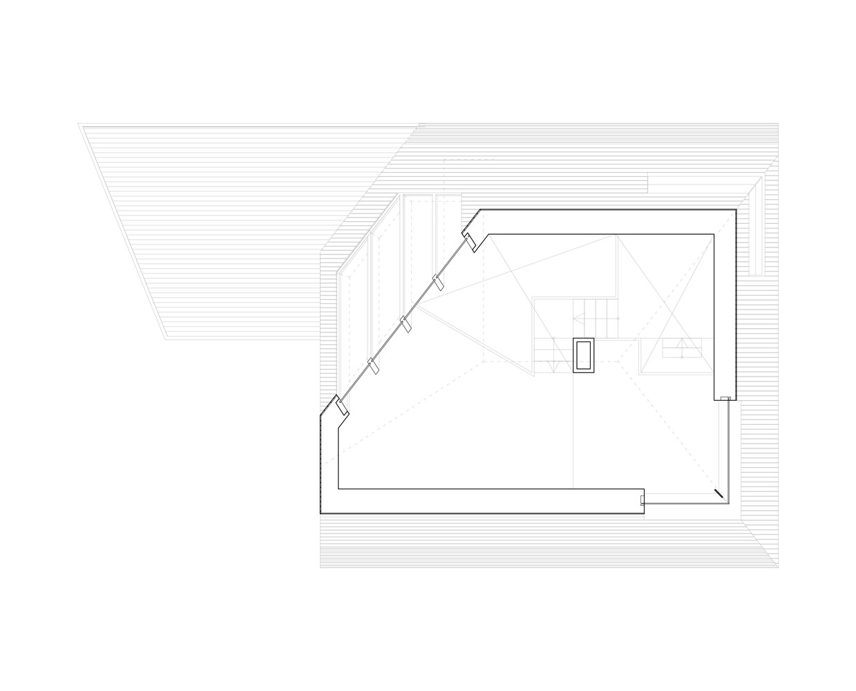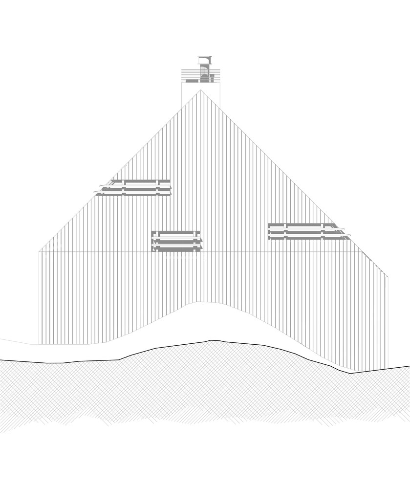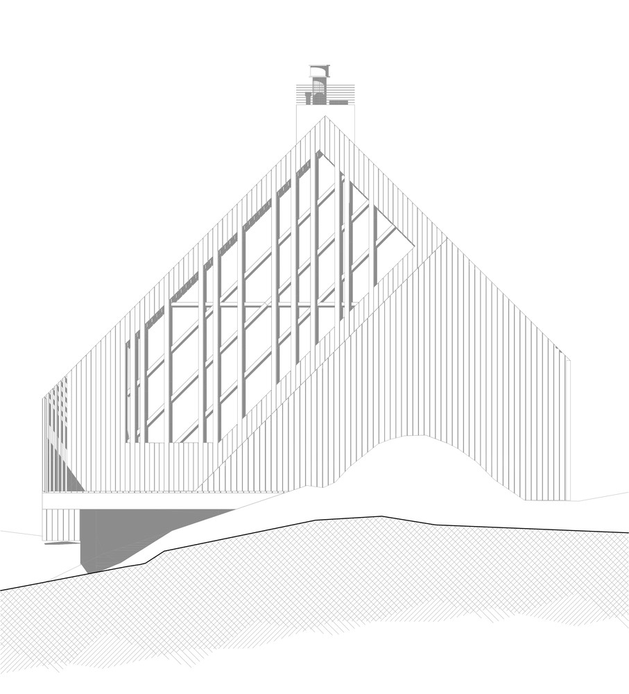 这种设计造就了这样一个独特的建筑,一个木制的钻石,它的每一个侧面与其他侧面都很不同,它是一个完全融合在这片景观之中,却又有一个和周边环境紧密相连的内部空间。