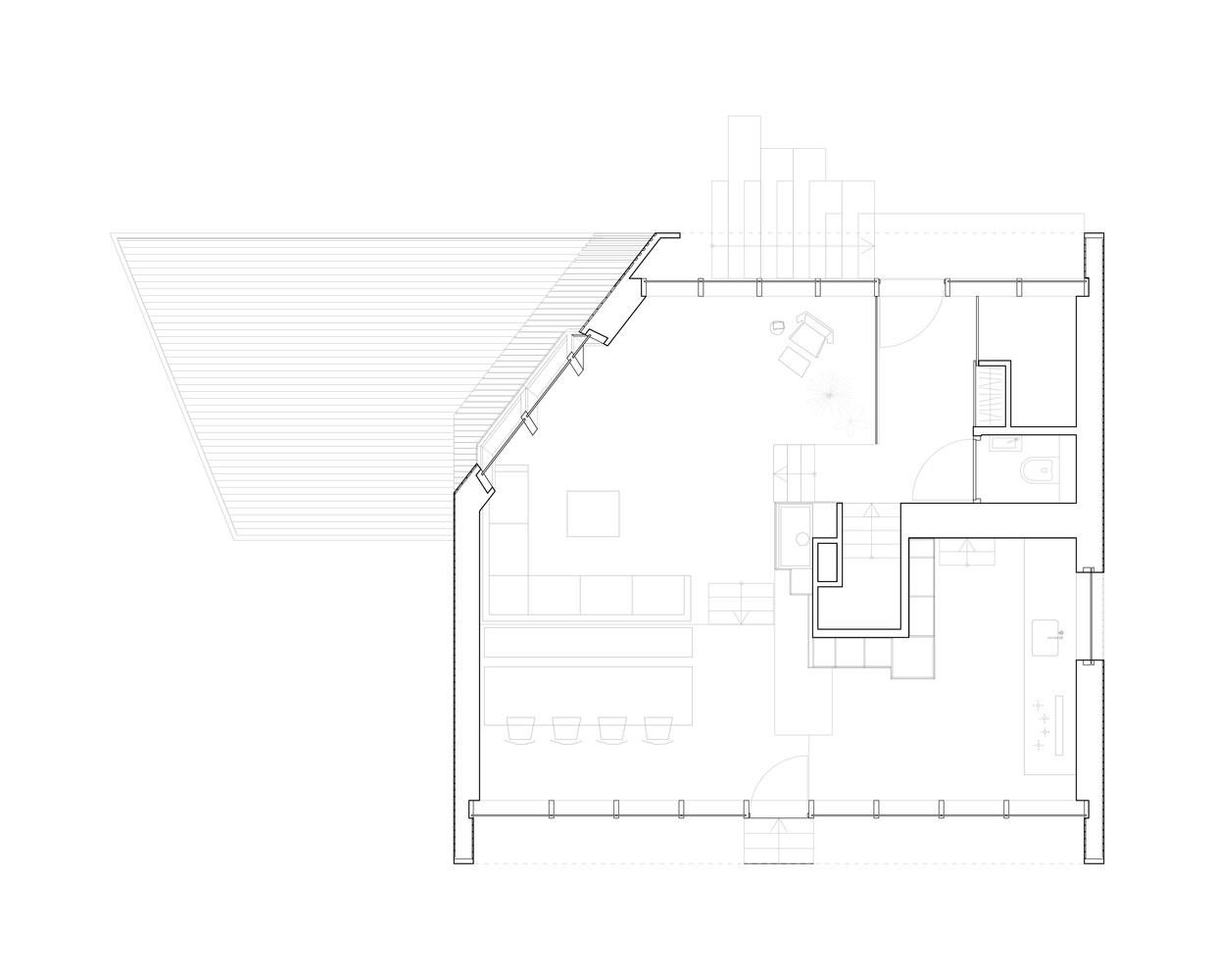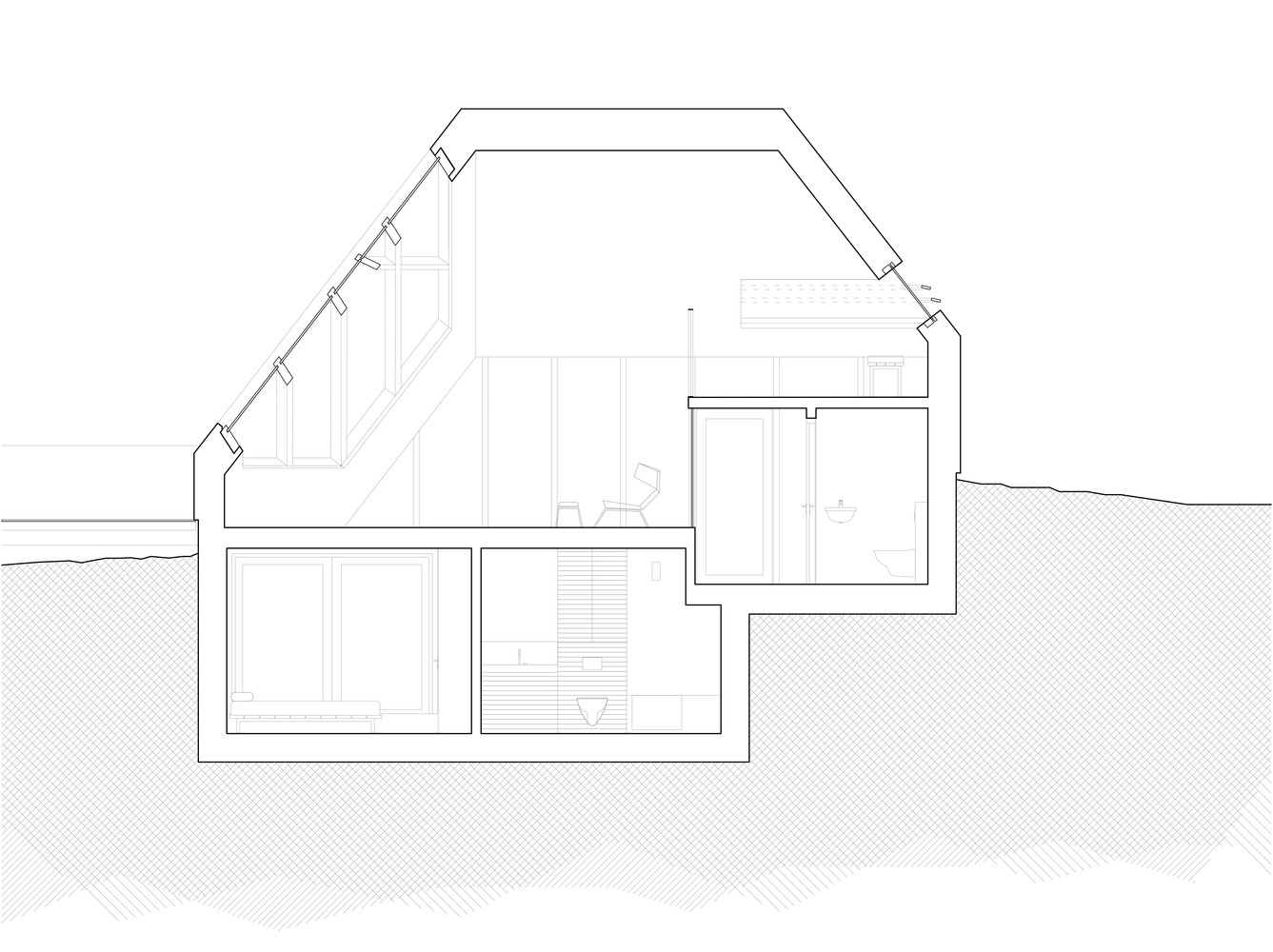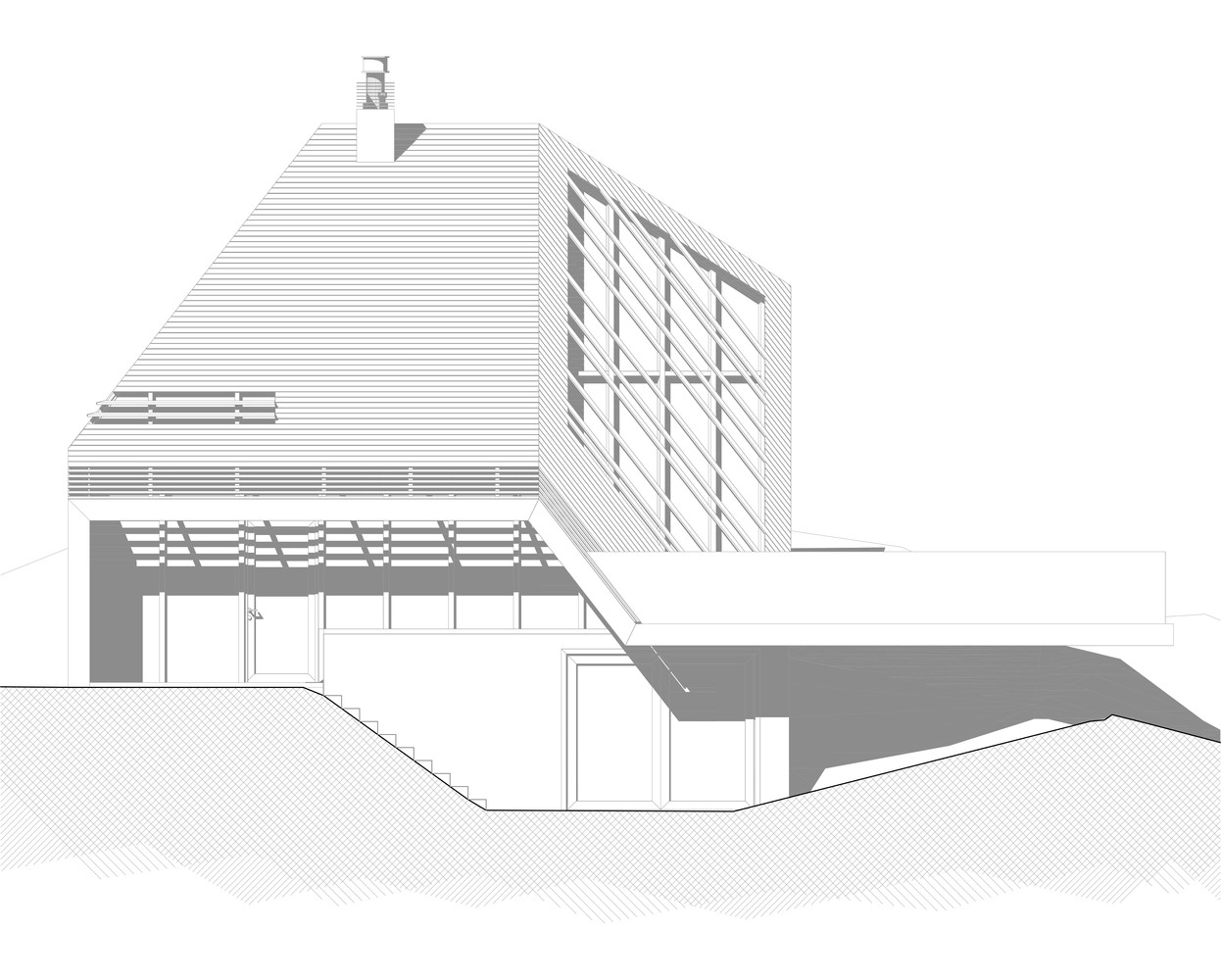 这种设计造就了这样一个独特的建筑,一个木制的钻石,它的每一个侧面与其他侧面都很不同,它是一个完全融合在这片景观之中,却又有一个和周边环境紧密相连的内部空间。