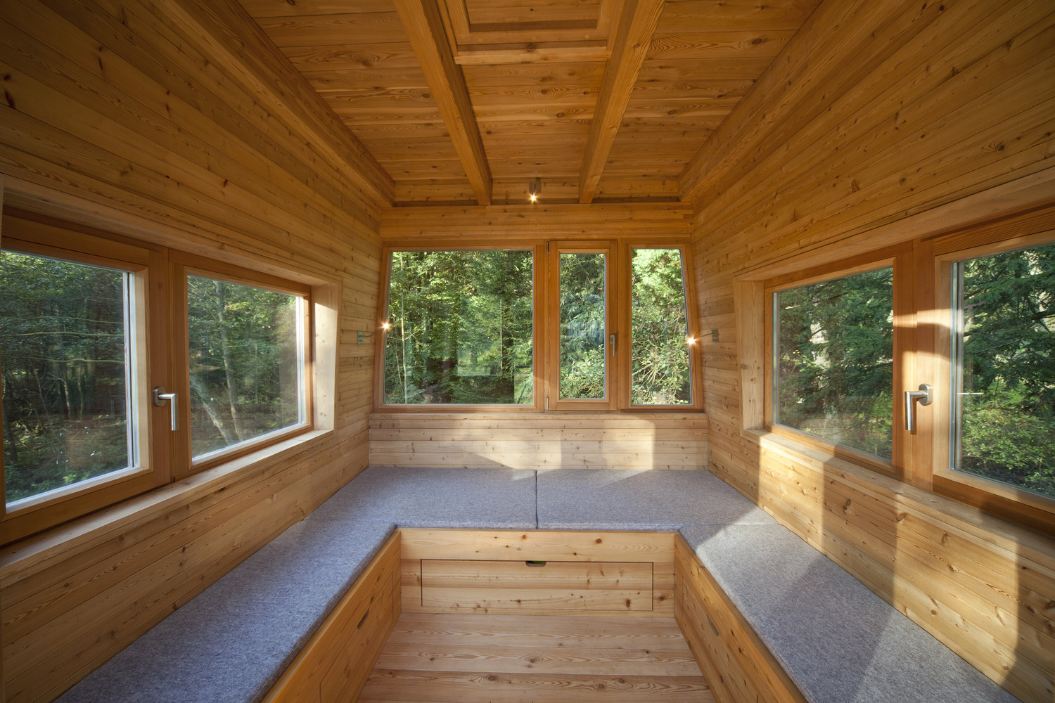 树屋的上下2层都配备了很多的躺椅和长椅,以及储藏间和电气连接。白天,在树屋上的有利位置能够观察到水中的生物和附近的草地。鱼、青蛙和甚至还可以看到鹿。到了晚上,上层的卧室是一个舒适的睡觉和做梦的地方,每当天空晴朗,从屋顶的圆顶天窗望出去能够看到满天的星星。