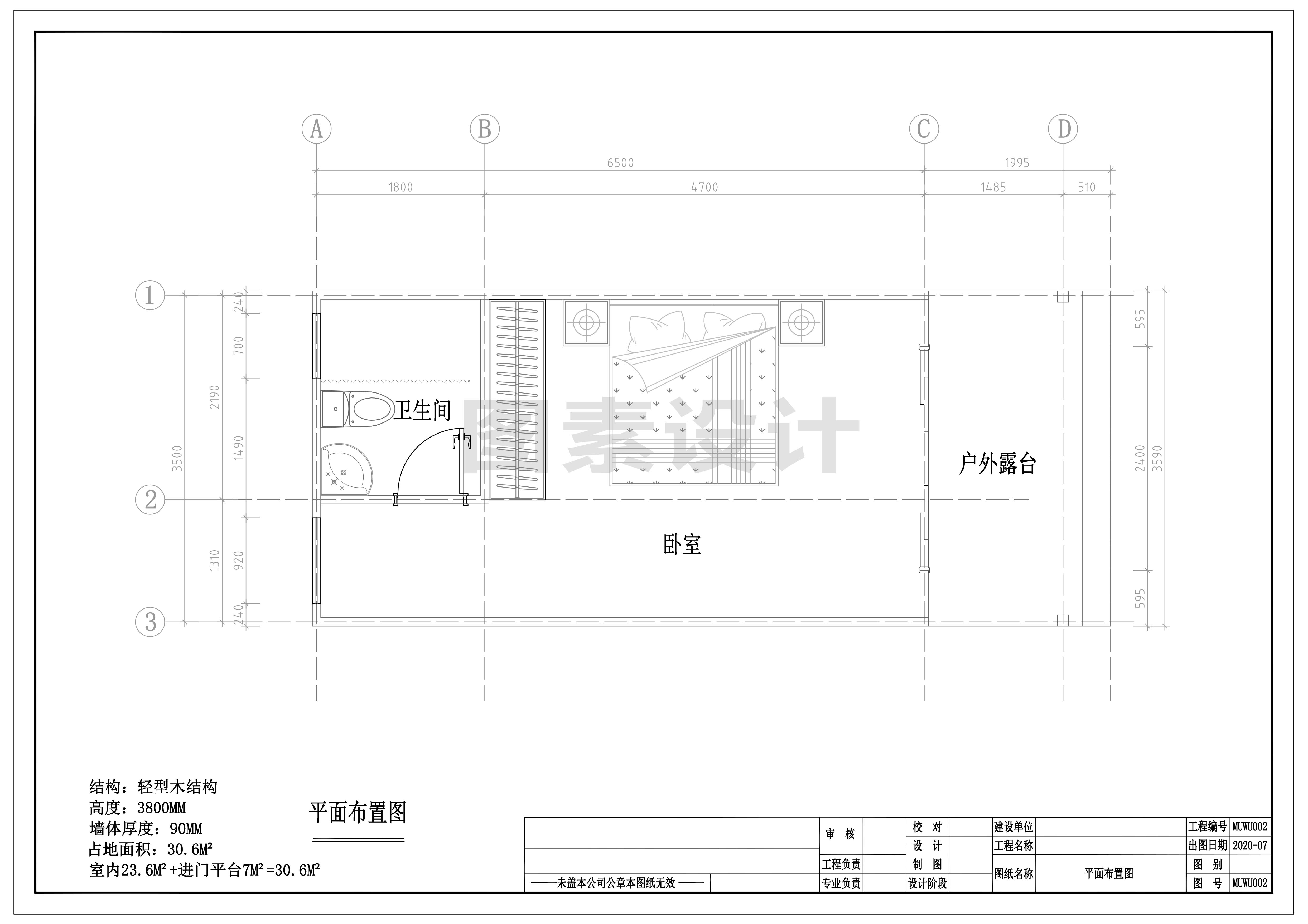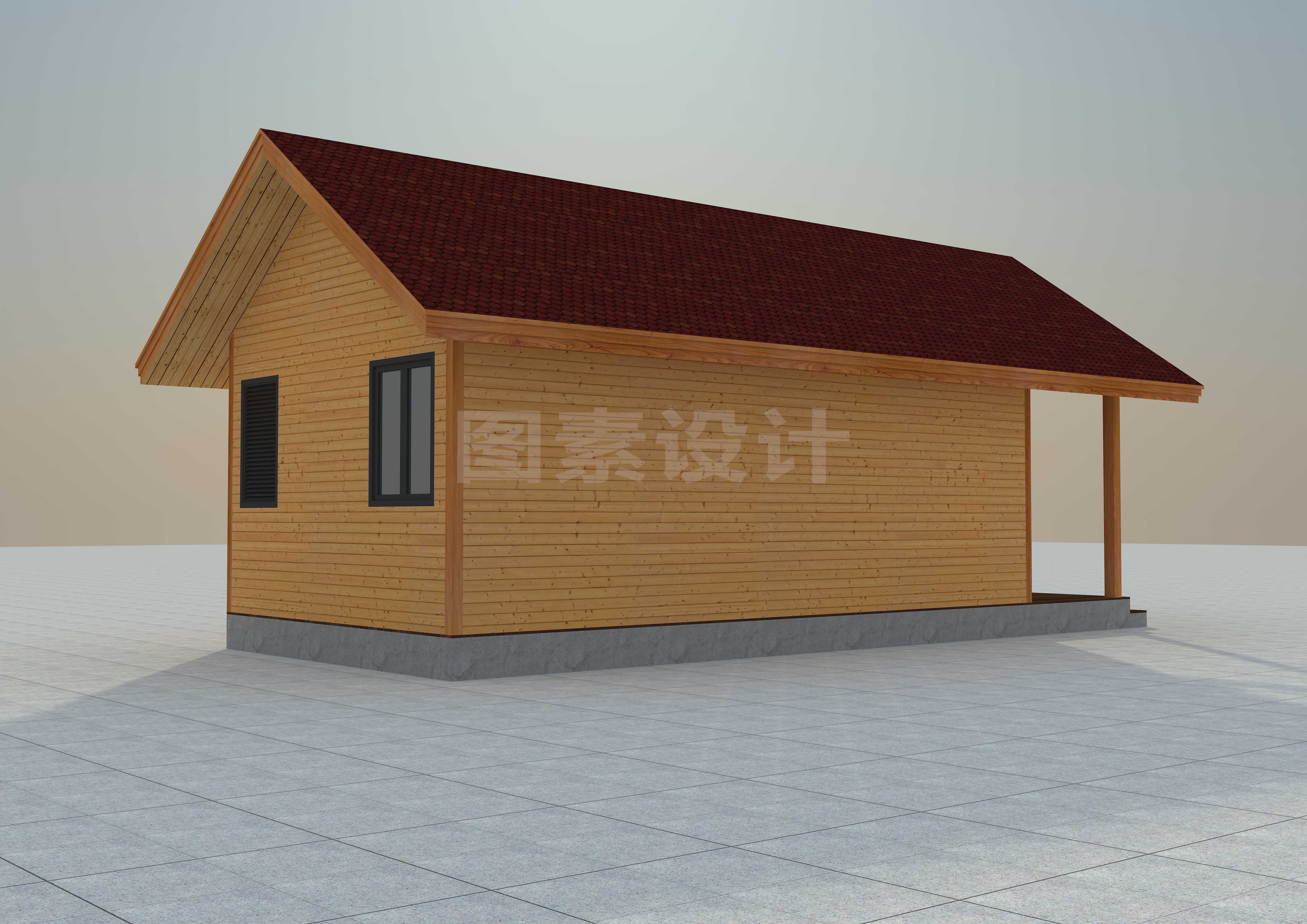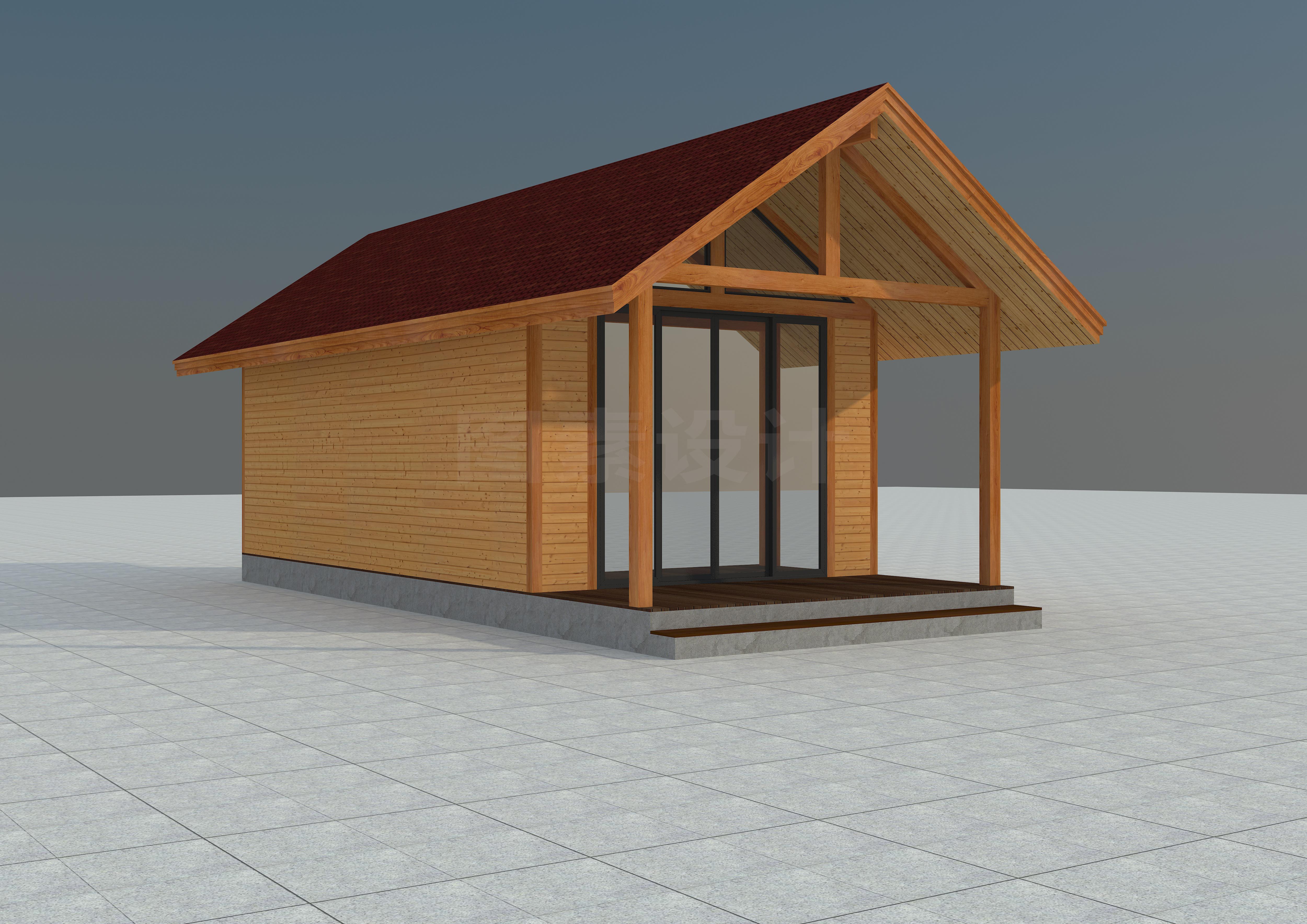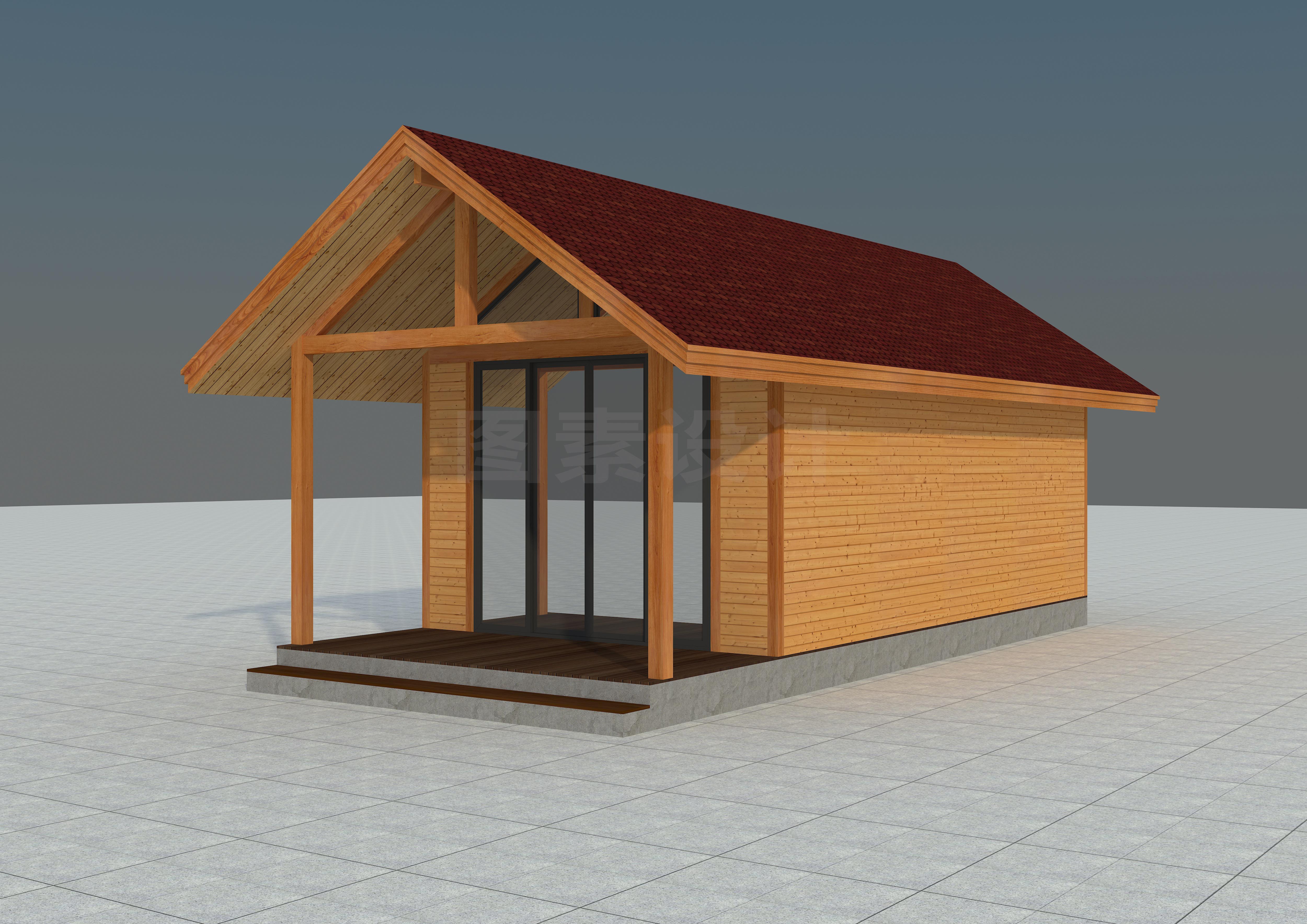 MUWU002新款30.6平方原创轻型小木屋效果图及平立面图纸CAD/3DMAX源文件