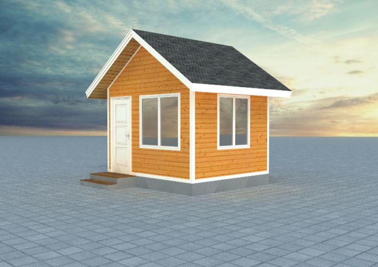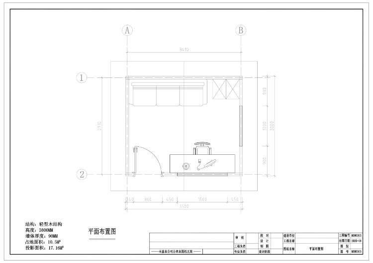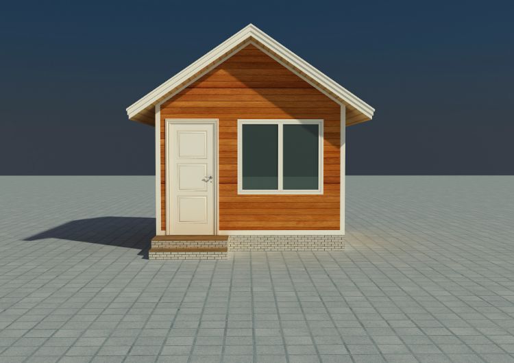 本款木屋比较小主要使用为临时工具房、保安室、门卫室等用途,结构为轻型木结构,预设墙体厚度为90MM,3.8米高