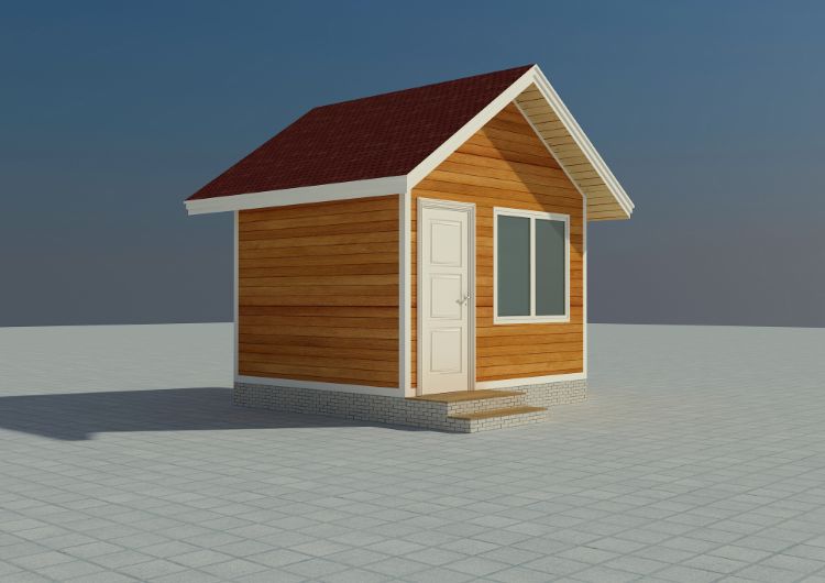 新款10.5平方原创轻型小木屋、木屋保安室、木屋门卫室效果图及平立面3DMAX源文件