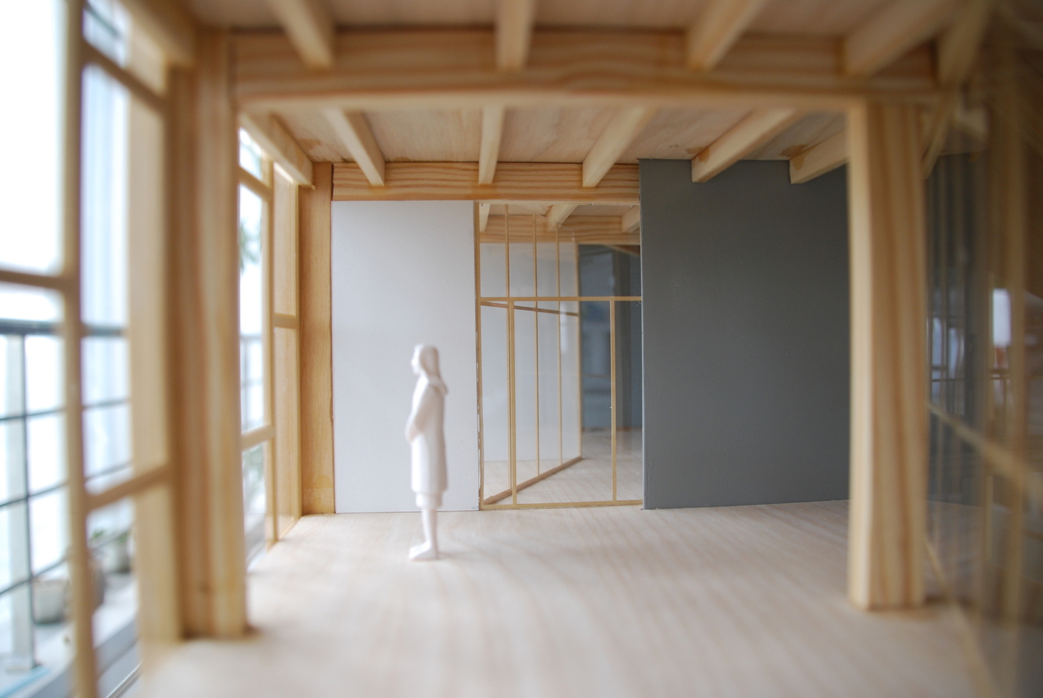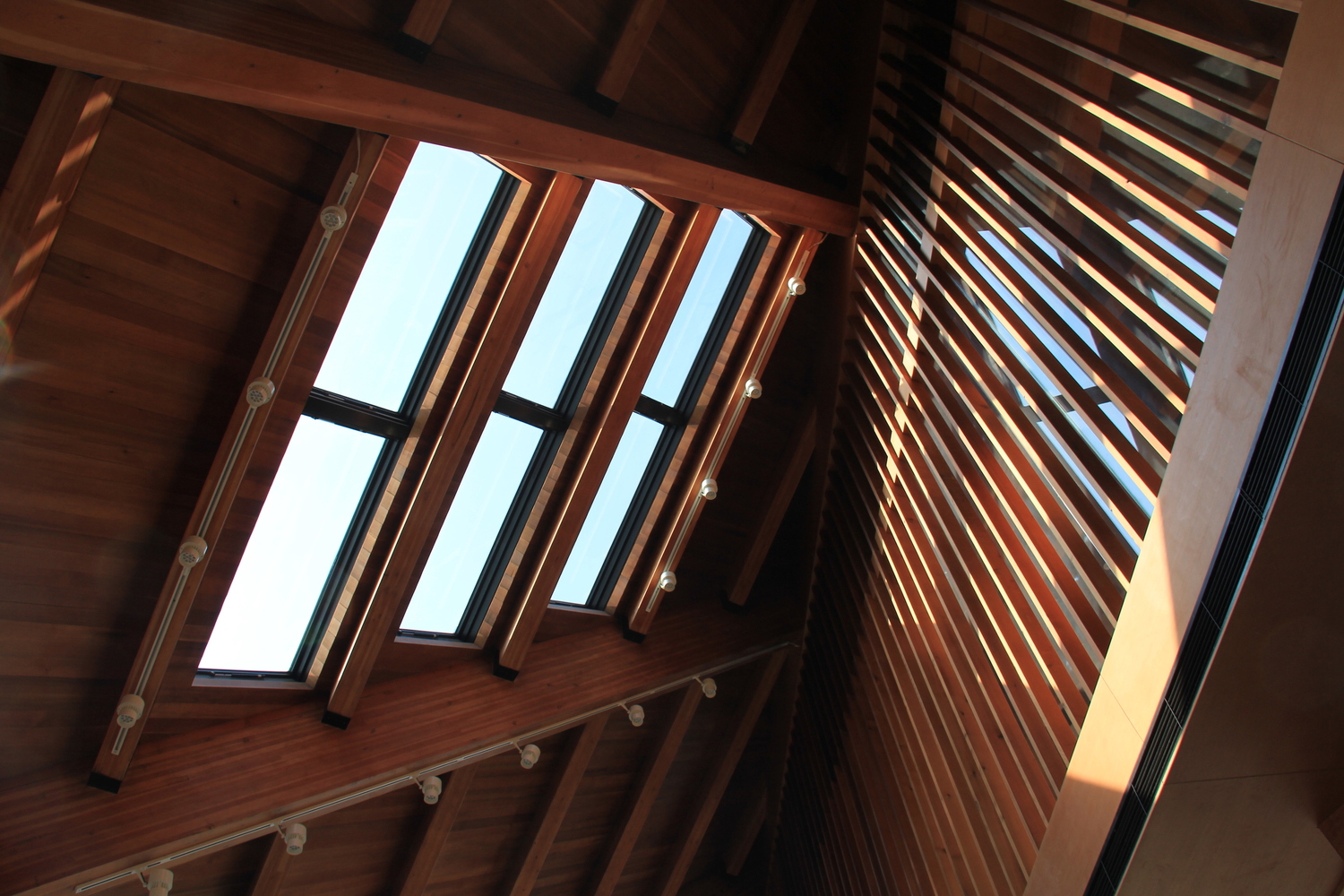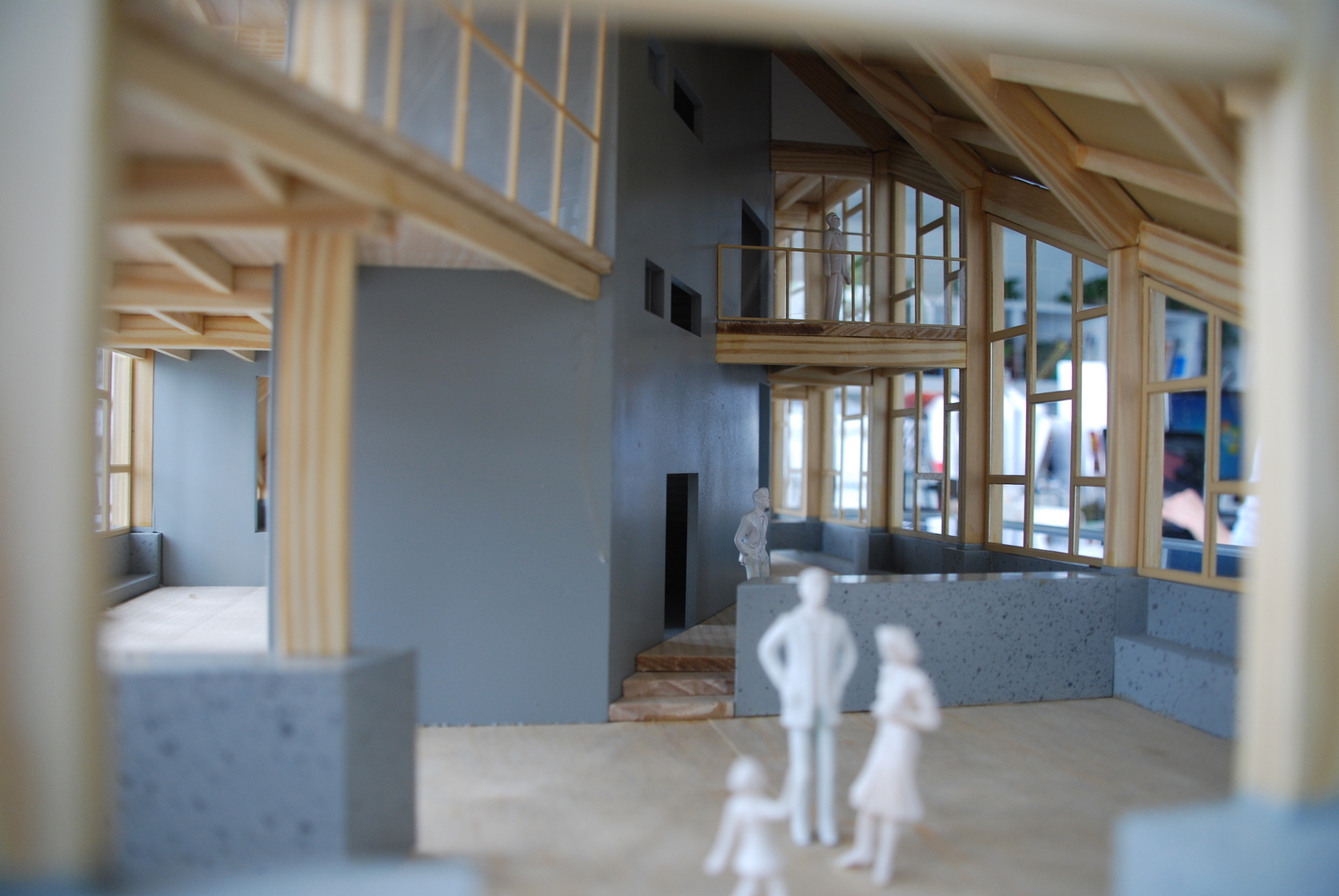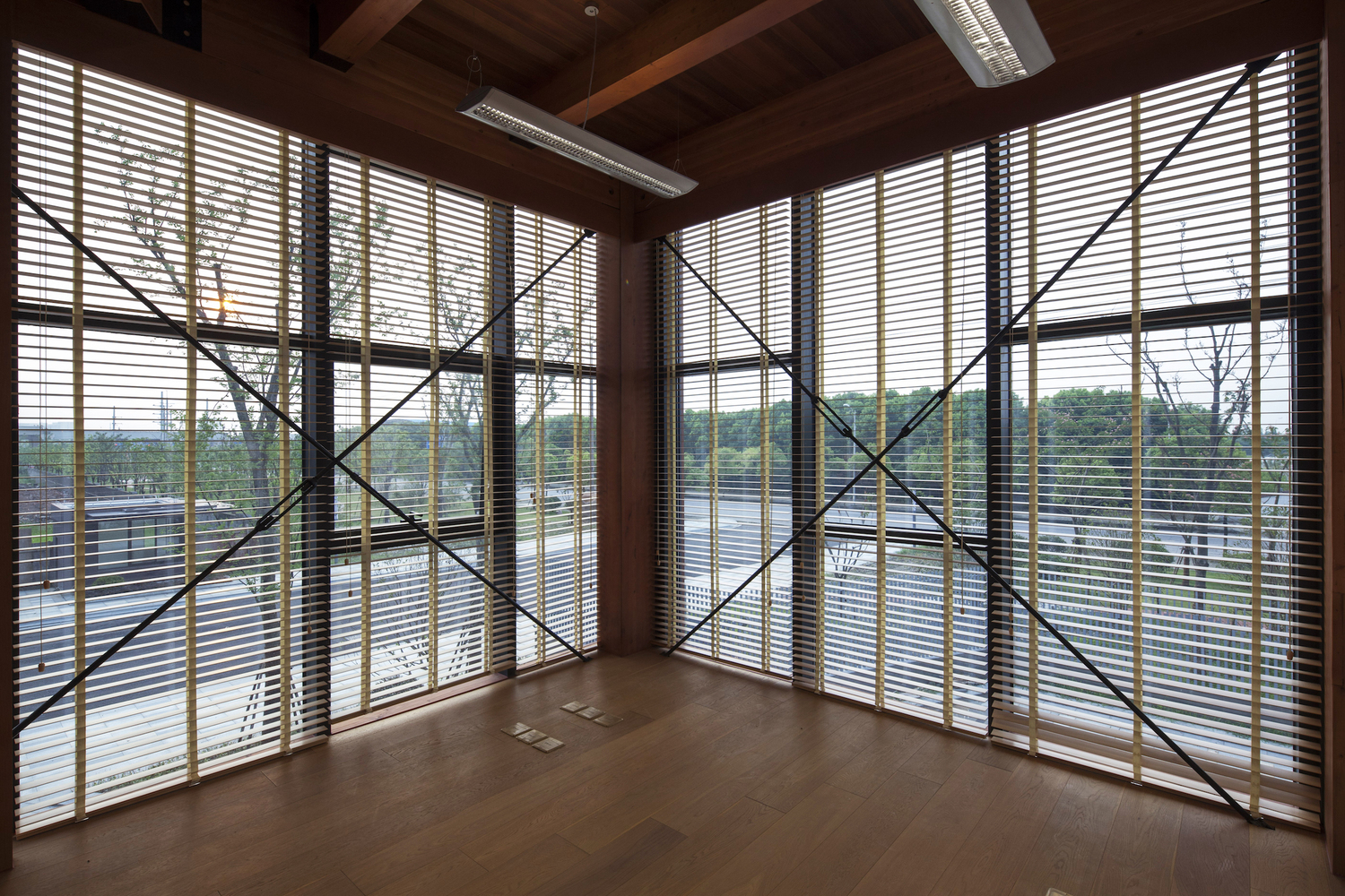 平行的木排架承担着竖向的受力,中央部分的混凝土核心则担负着水平向的受力。整个核心结构通过楼梯、卫生间、设备用房的设置,被处理成一部精巧的机器。