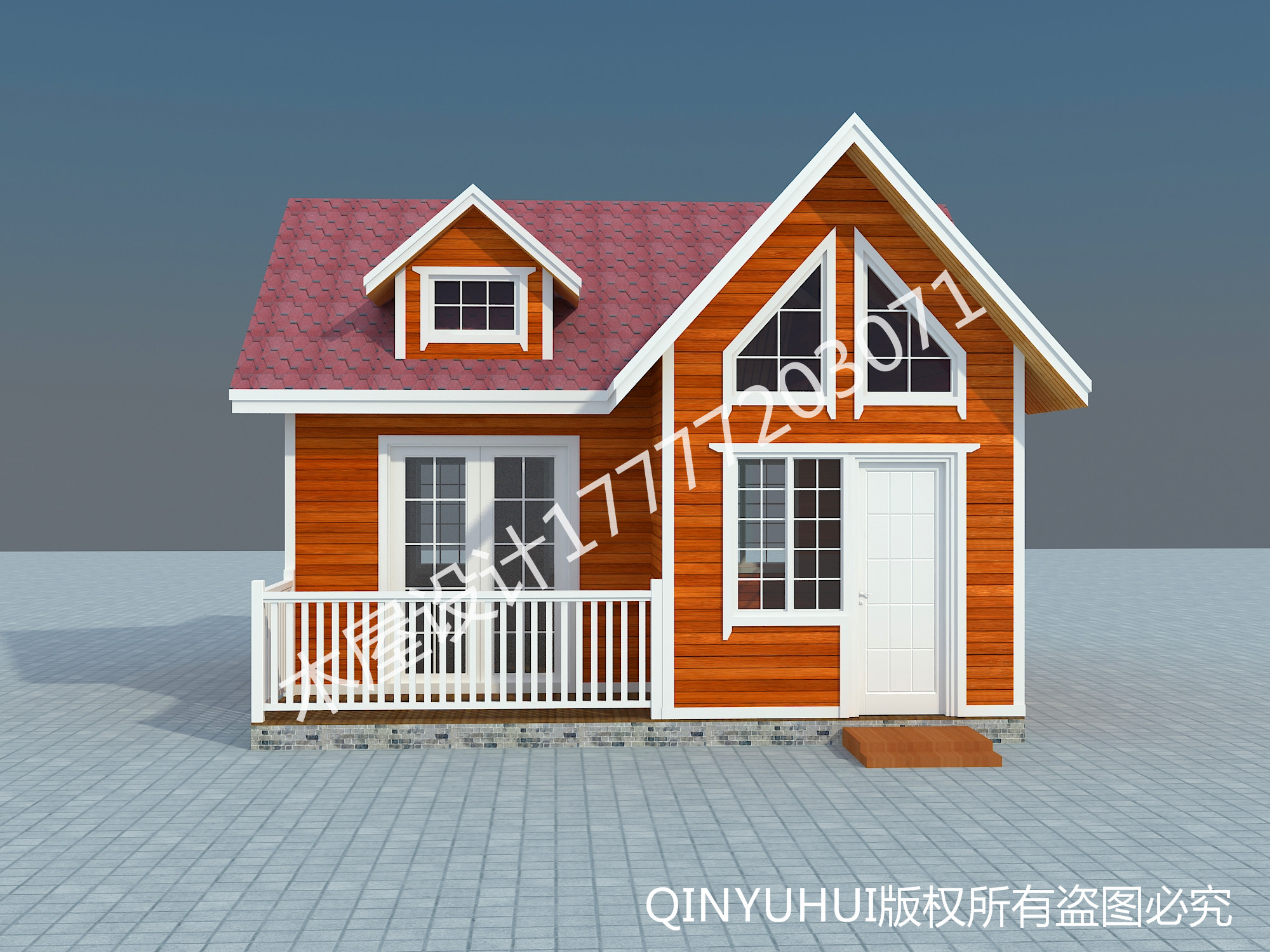 本款木屋比较小主要使用为临时工具房、保安室、门卫室等用途,结构为轻型木结构,预设墙体厚度为90MM,3.8米高 本款式方案包含高清效果图,PDF平立面图纸文件……qinyuhui 2021-09-03