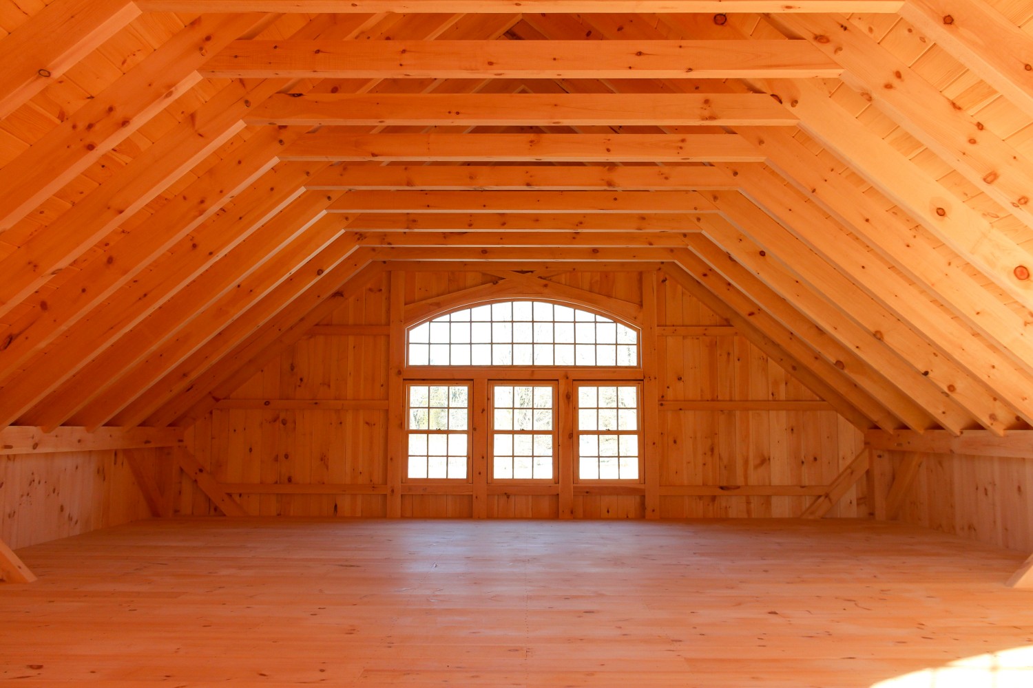 刚建好的梁柱型木屋别墅室内外展示